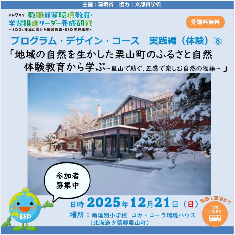 【環境省主催】「教職員等環境教育・学習推進リーダー養成研修」プログラム・デザイン・コース研修会のご案内 参加者募集中!