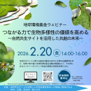 自然共生サイトの動向や協働事例から、地域で取り組む生物多様性保全活動の価値向上とネイチャーポジティブ社会実現の可能性を探る ●日時:2/20(金)14:00~16:00 ●ZOOM開催 ●参加無料・要申込 ●申込締切:2/19(木)
