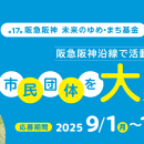 阪急阪神沿線で「地域環境づくり」や「次世代の育成」に取り組む市民団体を助成 ●助成額:①50万円②100万円 ●助成期間:1年間(2026/4~2027/3)●申請:フォーム入力後メール提出 ●申請期日:10/15 13:00必着